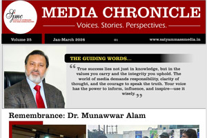 A testament to our commitment to experiential learning, students of SJMC conceptualize, report, edit, and publish a quarterly media journal titled Satyam Media Chronicle, under the mentorship of the Dean and Head of the Department. This student-led publication offers a robust platform to apply journalistic principles in a real-world setting, featuring a diverse range of sections: